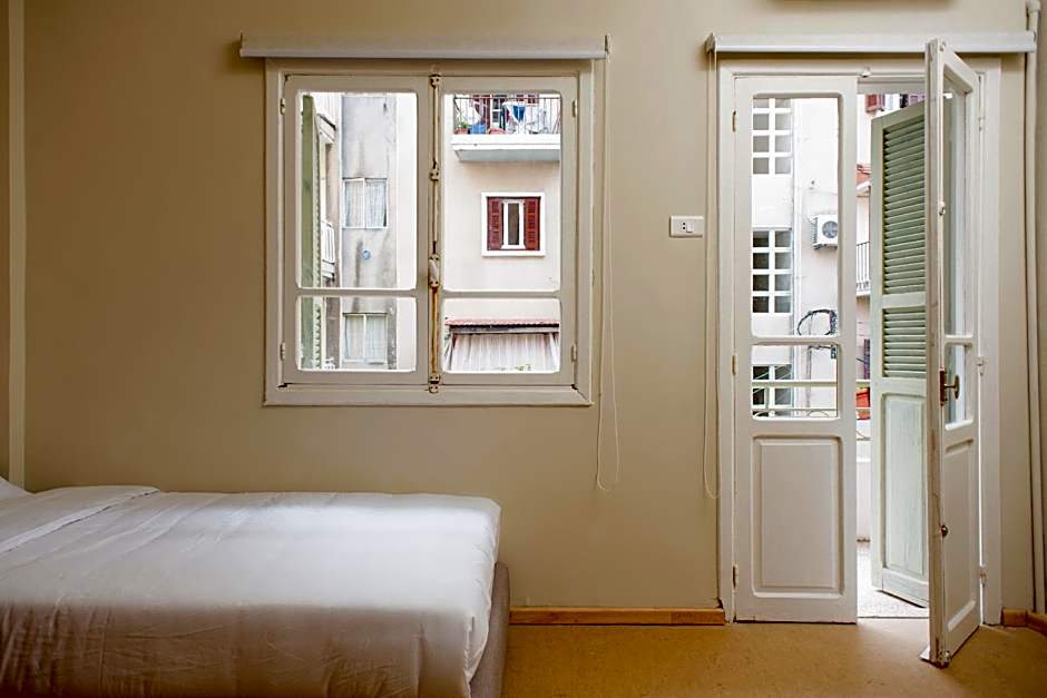 The twin/double room offers air conditioning, a washing machine, a balcony with city views as well as a shared bathroom featuring a walk-in shower.